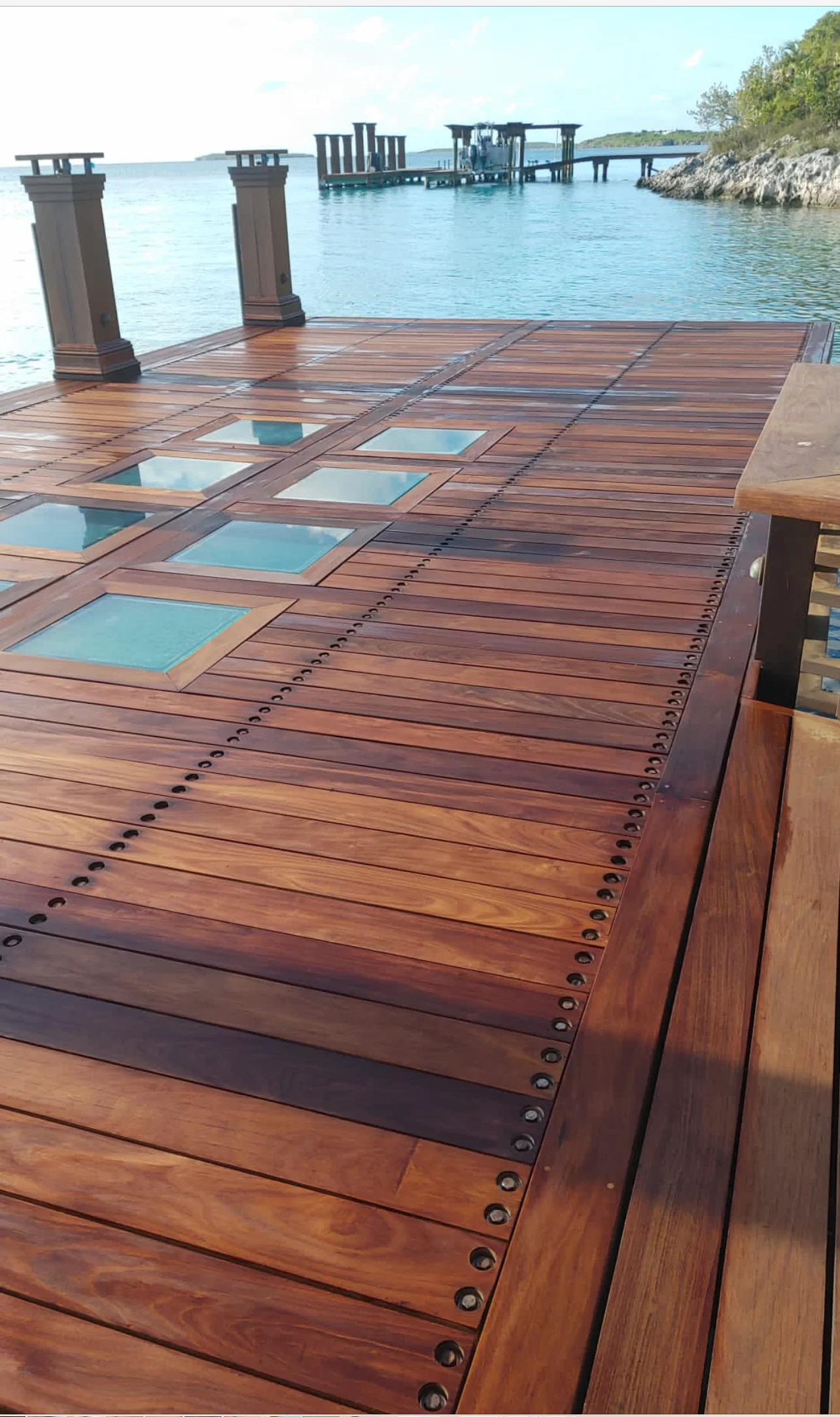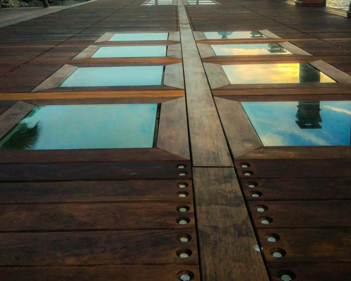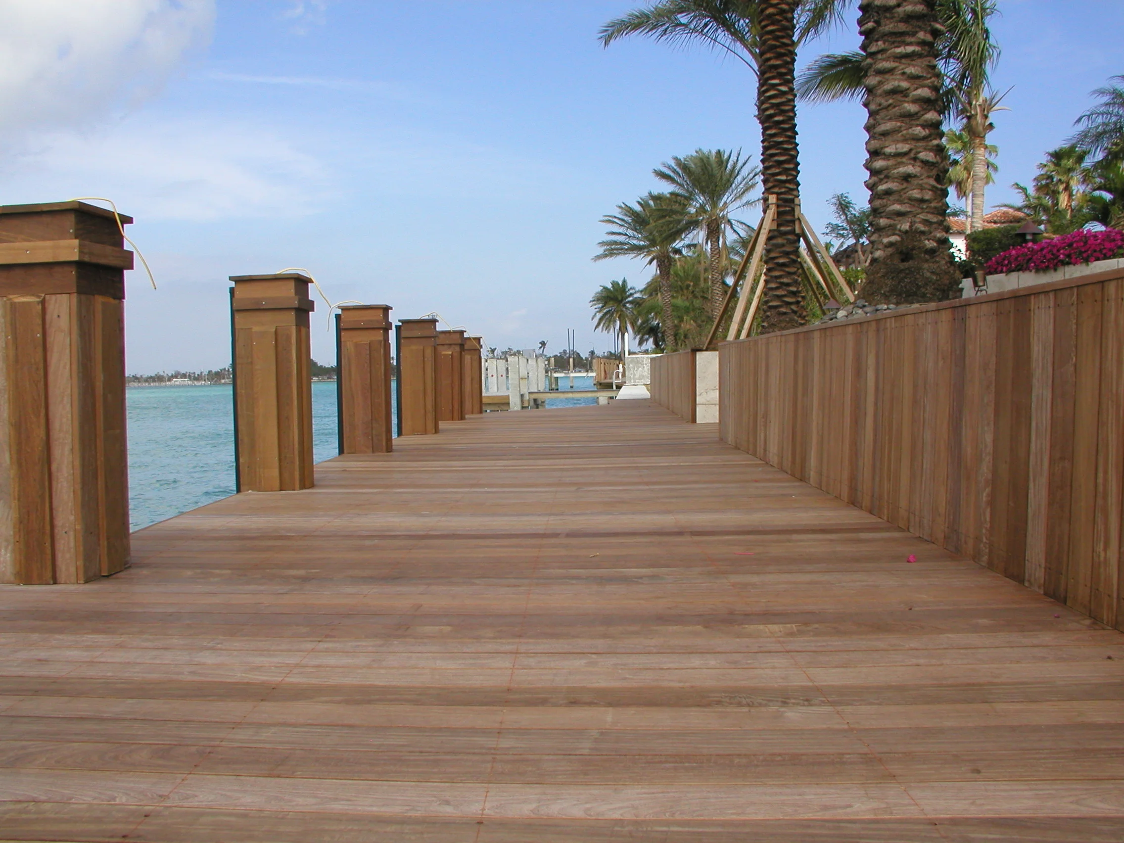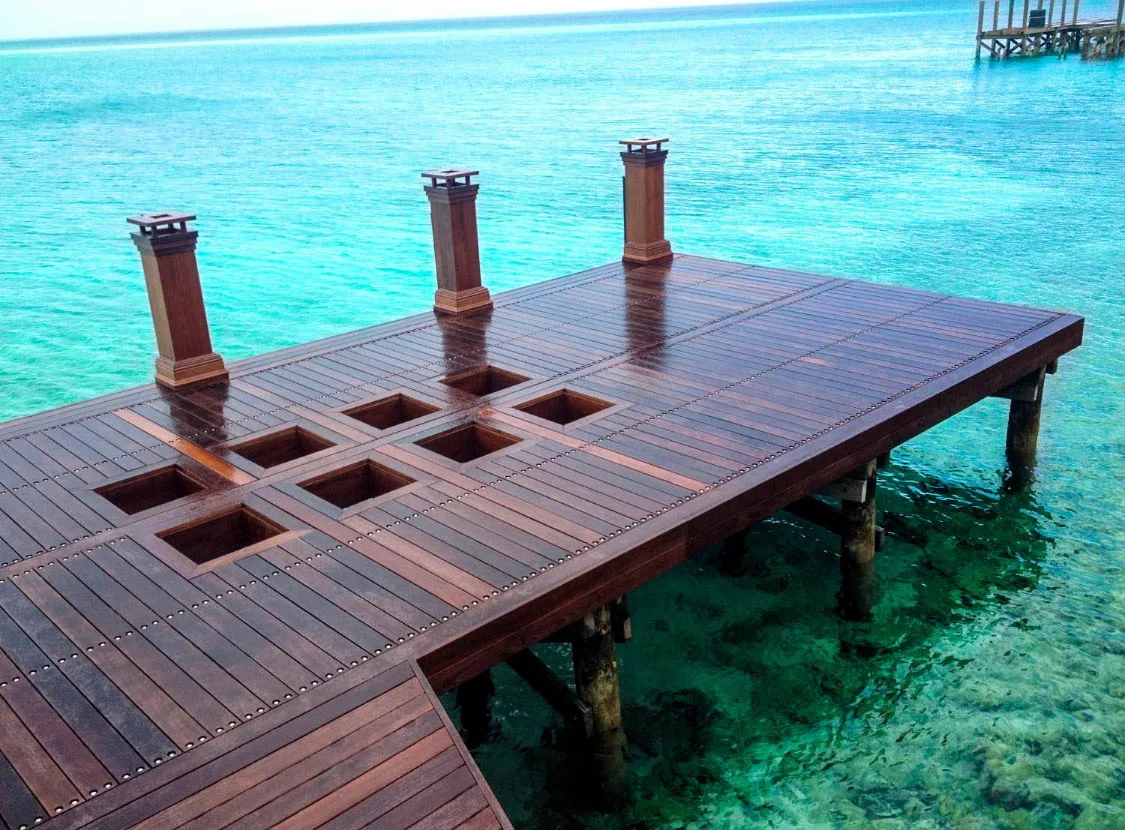 We use premium tropical hardwoods such as Ipe, Cumaru, and Massaranduba, which are renowned for their exceptional density, strength, and natural resistance to rot, insects, and decay. These woods ensure that your dock will stand the test of time, even in saltwater applications.